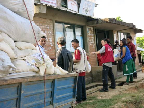 5月4日,爱德基金会救援物资分为三批,分别发往加德满都市郊区、Bhaktapur县山区以及Lalipur县的山区。