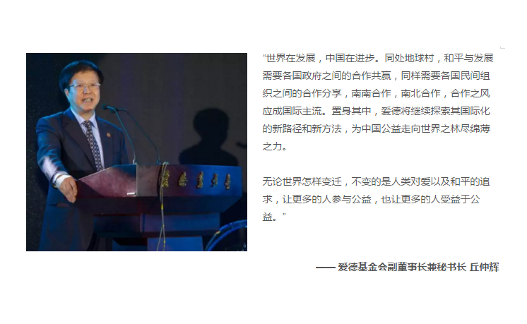 2015年12月12日19:30,责任中国2015公益盛典颁奖礼在深圳隆重举行。爱德基金会副董事长兼秘书长丘仲辉荣获最具分量的“年度致敬大奖”。